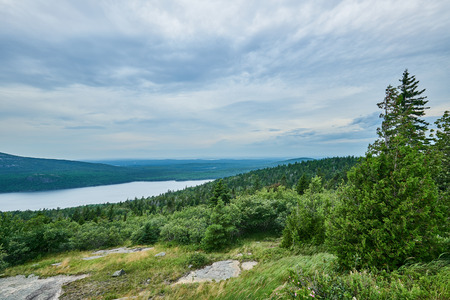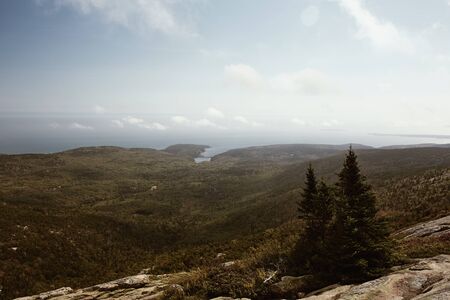 Overlooking Maine Acadia National Park on top of Mount Cadillac during summer