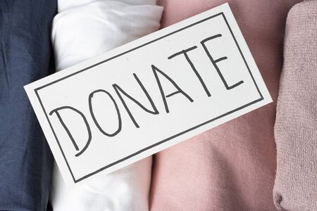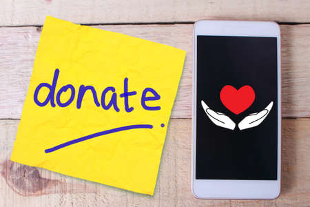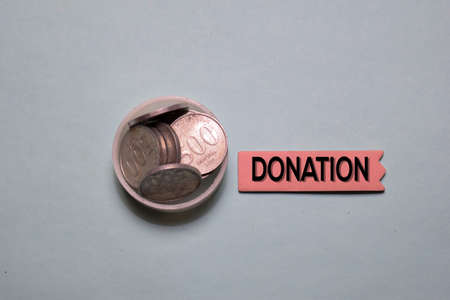 Donations in wooden words letter, motivational self development business typography quotes concept