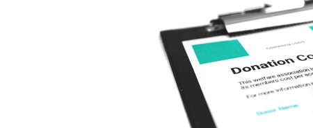 Donation form with donor name background, man is signature donation consent, charity concept photo