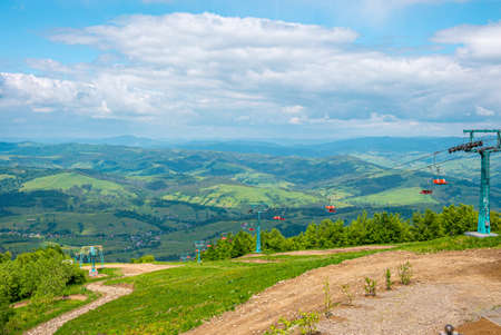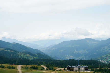 panoramic view of bukovel in Ukrainian carpathian mountains. copy space