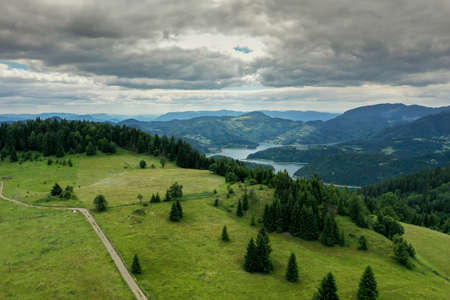 Morning in the mountains. Carpathian Ukraine, Aerial view.