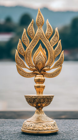 Ornate Golden Lotus Candle Holder Elegant Design Intricate Detail Beautiful Religious Symbol