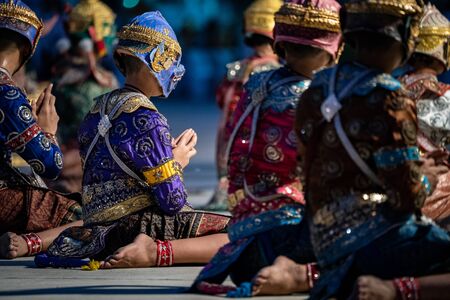 Ramayana pantomime story dancing and acting on the ground by Thai students in Thai Temple