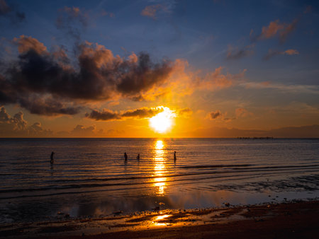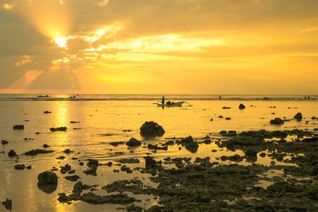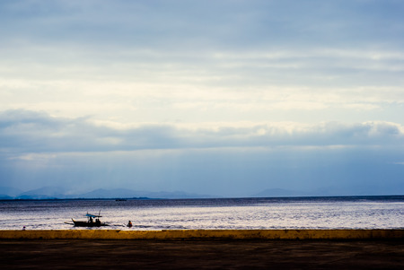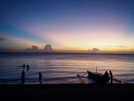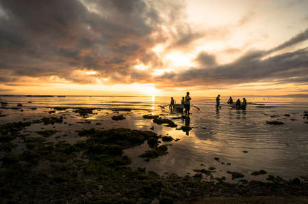 beautiful sunrise on the island of Cebu Philippines. fishermen catch fish at dawn