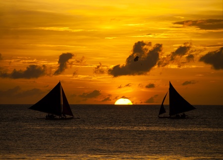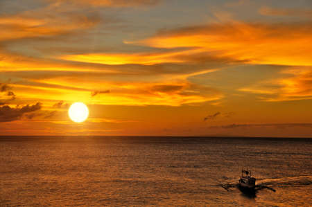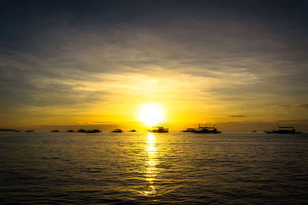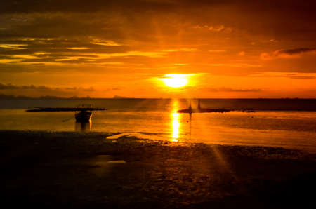 dawn on Panglao island, Philippines, bright yellow sun and the boats of the local fishermen