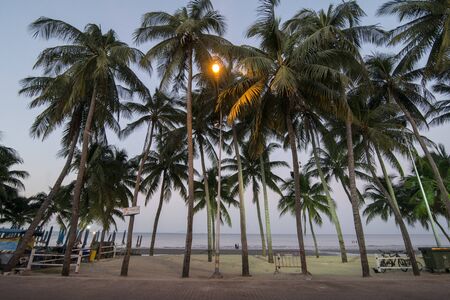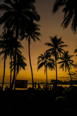 Sunset landscape. beach sunset. palm trees silhouette on sunset tropical beach, China