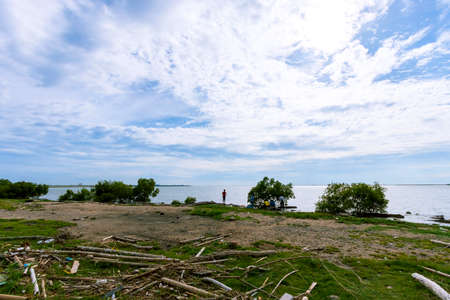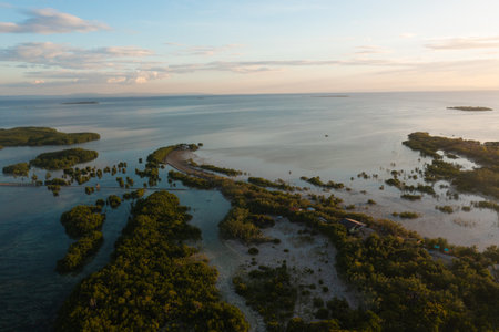 Scenic landscape of tropical mangrove forest at coast. Green vegetation in Olango Island, Lapu-Lapu, Philippines.