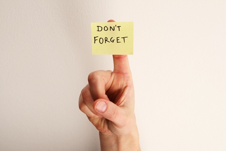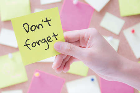hand holding a notepaper or post it with words don't forget