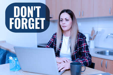 Text caption presenting Don T Forget. Word Written on Know by Heart Think Back Fix in the Mind Refresh Memory Computer Keyboard And Symbol.Information Medium For Communication.