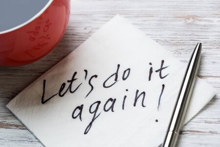 Make things happen motivational reminder - handwriting on a sticky note with a cup of coffee