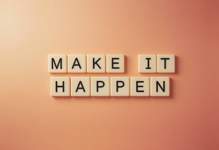 A creative arrangement of letter blocks spelling Make It Happen against a soft background, symbolizing motivation, inspiration, and the pursuit of goals.