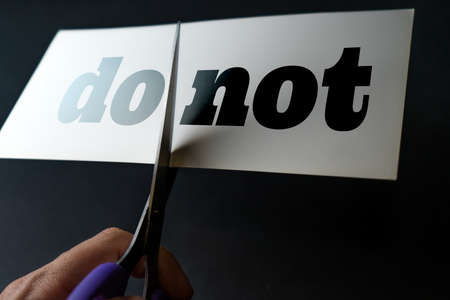 Woman hand cutting paper note with scissors to remove T word I can't do it texts on green nature background. Positive attitude, self belief and motivation concept.