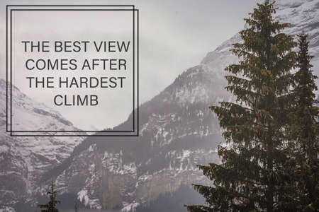 Inpirational typographic background. The best view comes after the hardest climb with mountains background