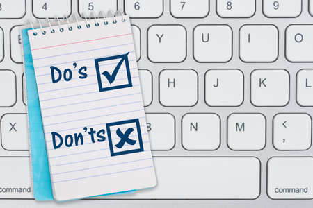 Dos and Donts message blue notepad on gray keyboard for your online grammar message