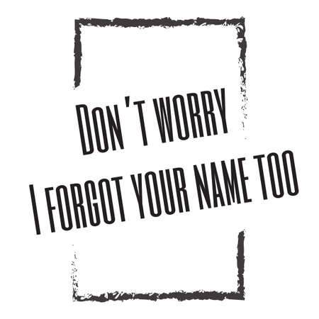 Funny phrase for printing on t- shirts. Don’t worry. I forgot your name too. Stylish design for placement on clothes and things. Beautiful quote. Motivational call for placement on posters.