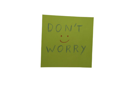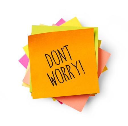 a colored memo sheet with writing don't worry on a transparent background