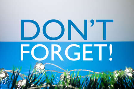 Don't forget! Text on Christmas Background. Holiday themed reminder as celebration, traditional gift card.