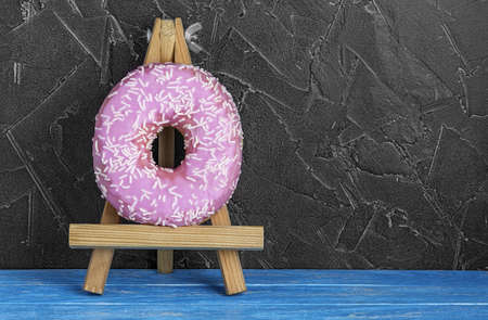 Donuts with icing on color background. Sweet donuts. Donuts background . Eaten donut.