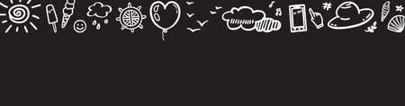 summer web banner. Hand drawn holiday elements. summer holidays. Free hand signs and symbols. black and white illustration