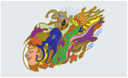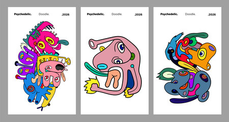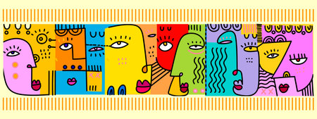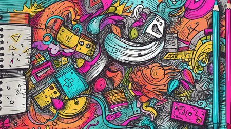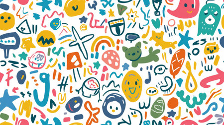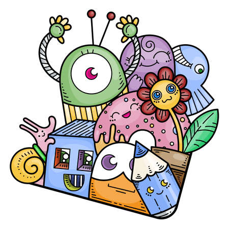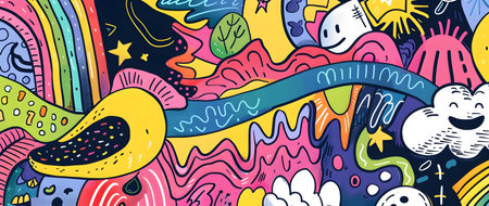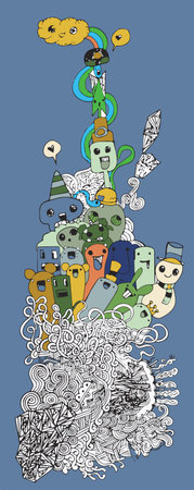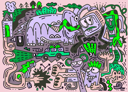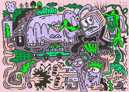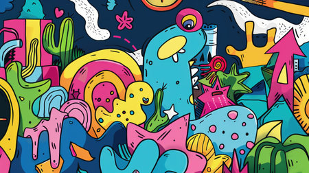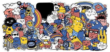 This vibrant hand-drawn vector illustration features playful cartoon characters, perfect for creative projects. Ideal for modern design needs.