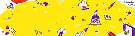 Designer hand drawn doodle banner. Cartoon detailed flyer.