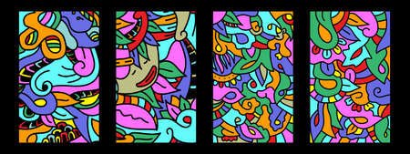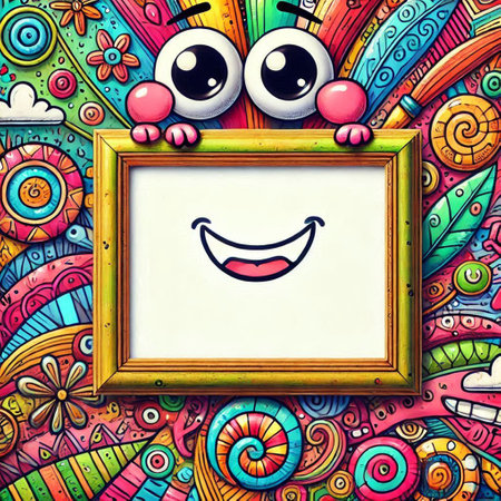 Discover a vibrant abstract vector artwork featuring playful faces and chaotic elements, perfect for adding a bold touch to any creative project.