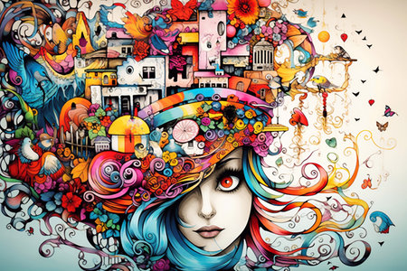 Colorful abstract face portrait cubism art style, decorative, line art hand drawn vector illustration. Aesthetic design for wall art, decoration, poster,card and cover.