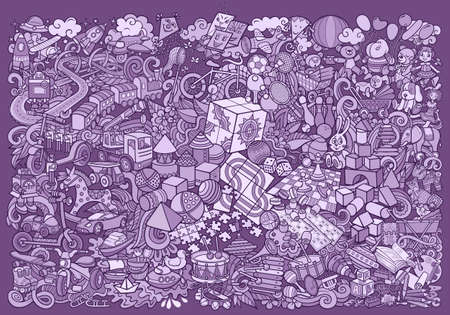 Colorful vector hand drawn doodle pattern, detailed, with lots of objects background