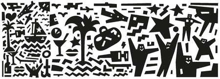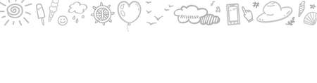 Hand drawn black holiday elements on white. Summer holidays. free hand web banner
