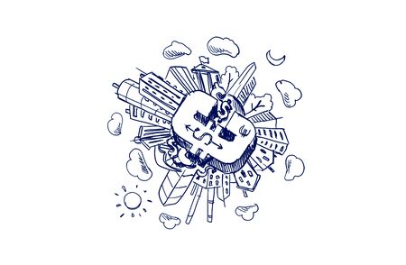 Hipster Hand drawn Crazy doodle Monster City,drawing style.Vector illustration.