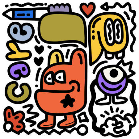 Hand drawn illustration colorful, doodle monster, Hand drawn cartoon monster illustration, Cartoon crowd doodle hand drawn pattern, Doodle style. vector illustration