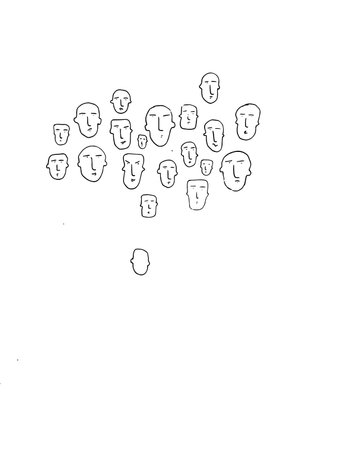 Faces of people different nationalities and ages drawn with black outline. Society doodle vector illustration