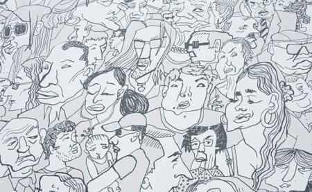 Collection of cartoon faces in black and white. Various expressions and hairstyles. Each illustration styles represents different emotions and showcasing diversity.