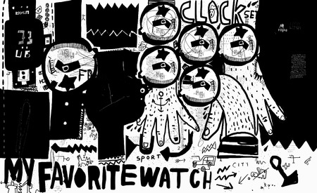 Trendy black and white doodle. With all sorts of things and people. Contemporary street style poster. Vector illustration.