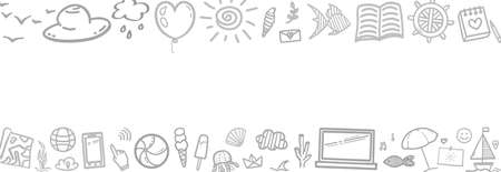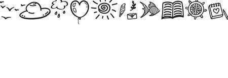 Hand drawn black holiday elements on white. Summer holidays. free hand web banner