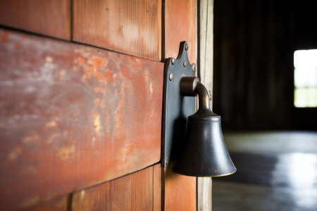 a cowbell hanging on a barn door handle, created with generative ai