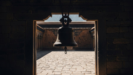 Bell in a monastery closeup with space for text. High quality photo