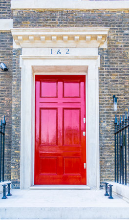 red traditional entrance door of a British house