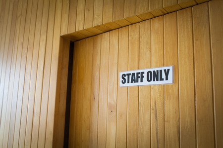 signs staff only hang on the wooden door .