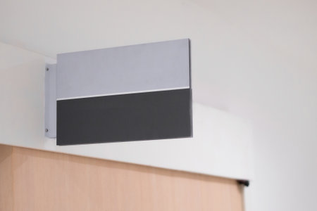 Blank black signboard hanging on the wall in the room.