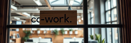 A modern office interior showcasing a Now Open sign reflects a vibrant work atmosphere, inviting collaboration and productivity in a stylish environment.