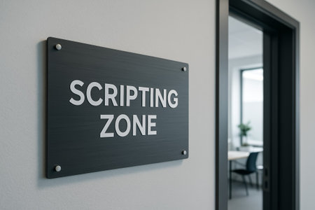A sign marked 'scripting zone' on a wall in a contemporary office environment
