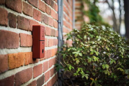 close-up of doorbell, with view of the outside visible through the window, created with generative ai