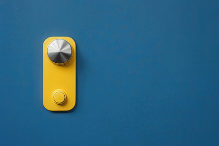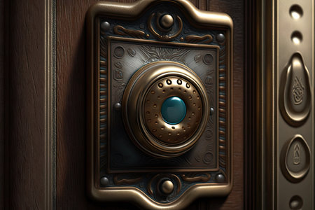 Close-up of a door knob with an orange button, a simple and striking detail. Ai Generated
