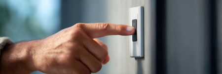 A close-up image featuring a light switch and electrical outlet against a textured wall, illuminated by soft ambient light, creating a warm and inviting atmosphere in the room.