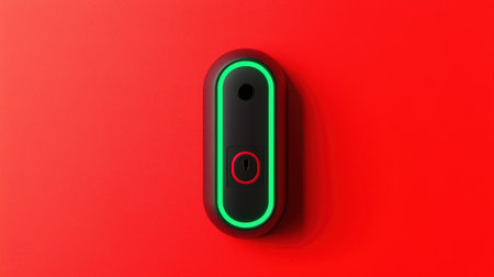 A sleek, modern device with a black and green design, set against a vibrant red background.