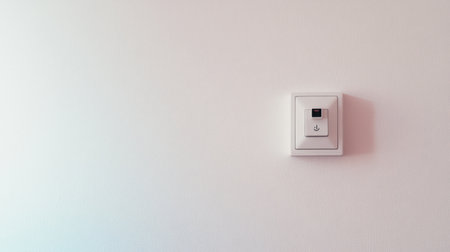 This image showcases a modern power switch installed on a plain wall, perfect for illustrating themes related to technology, design, and home interiors.