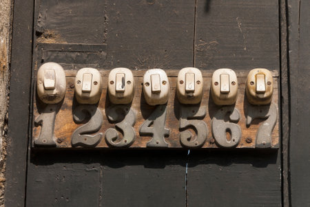 Retro doorbell button and numbers in Guatemala, central americ