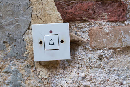 Old electric bell installed in a home on brickwall