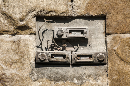 rundown old bell buttons at a wall